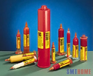 貼片膠,也稱為smt接著劑、SMT紅膠,通常是紅色的(也有黃色或者白色的)膏體中均勻地分布著硬化劑、顏料、溶劑等的粘接劑,主要用來將元器件固定在印 制板上,一般用點膠或鋼網印刷的方法來分配。貼上元器件后放入烘箱或回流焊爐加熱硬化。它與錫膏不同的是其受熱后便固化,其凝固點溫度為150℃,再加熱也不會溶化,也就是說,貼片膠的熱硬化過程是不可逆的。SMT貼片膠的使用效果會因熱固化條件、被連接物、所使用的設備、操作環(huán)境的不同而有差異,使用時要根據(jù)印制電路板裝配(PCBA、PCA)工藝來選擇貼片膠。